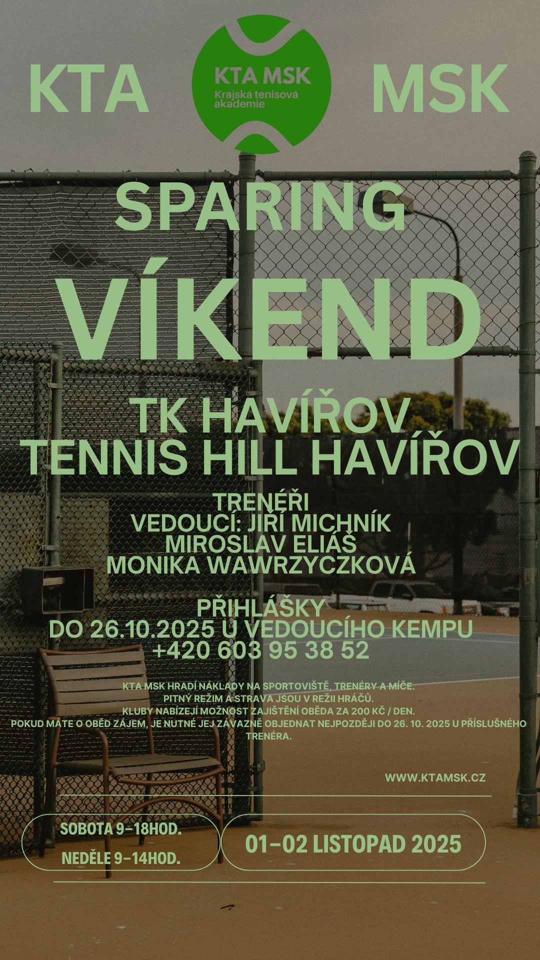 Rozdělení do AREÁLU TK Havířov a Tennis Hill Havířov bude zveřejněno 29.10 na webových stránkách KTA. Děkujeme