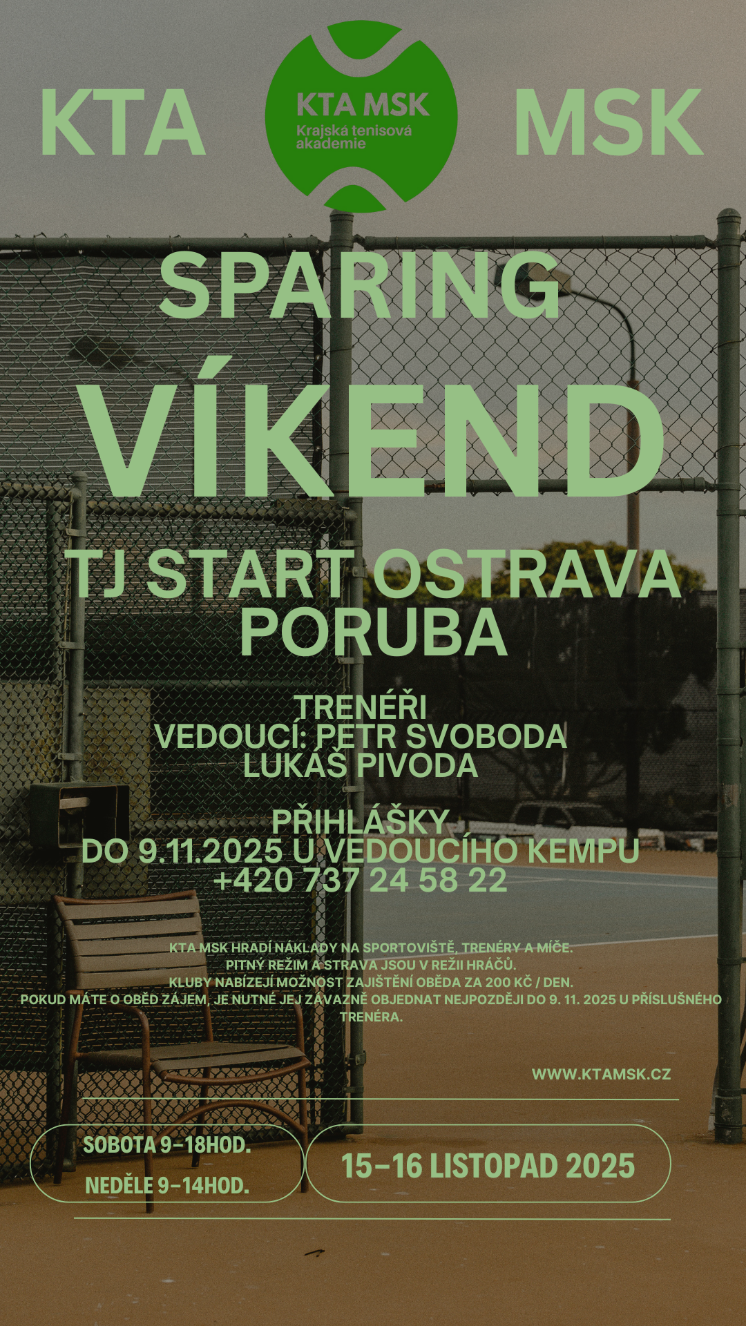 s radostí vám přinášíme informace o letním hromadném soustředění Krajské tenisové akademie Moravskoslezského kraje (KTA MSK), které proběhne v Ostravě – Porubě s přespáním na penzionu Start Ostrava. Každý turnus nabídne intenzivní tréninkový program, týmovou spolupráci, spoustu pohybu a přátelskou atmosféru.