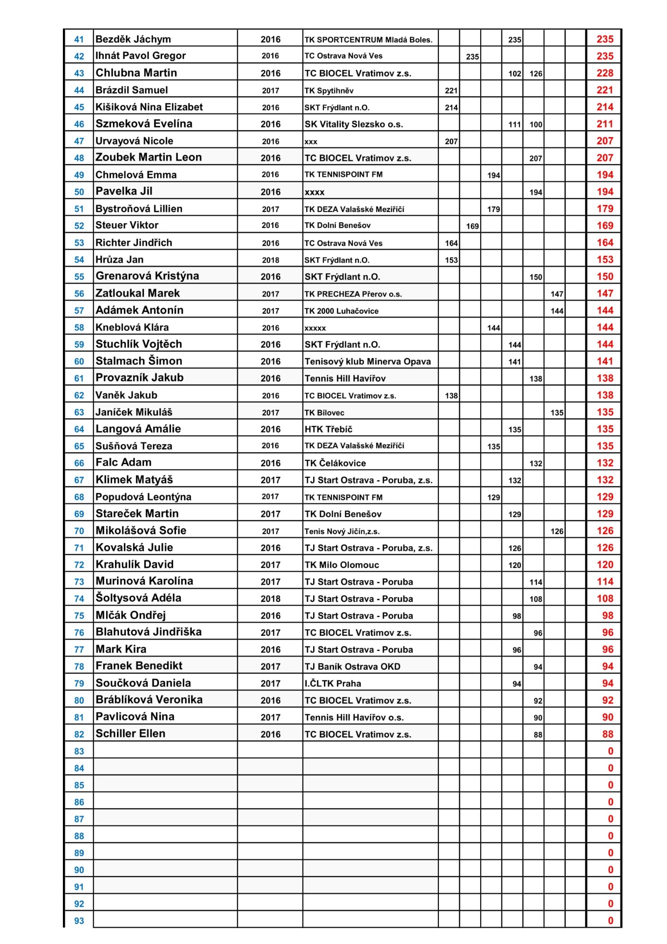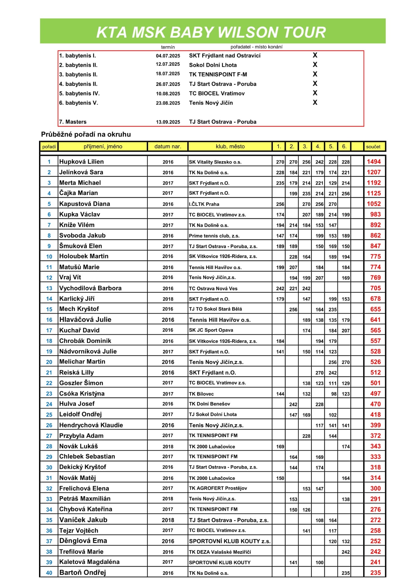 KONEČNÉ VÝSLEDKY KTA MSK BABY WILSON TOUR 2025