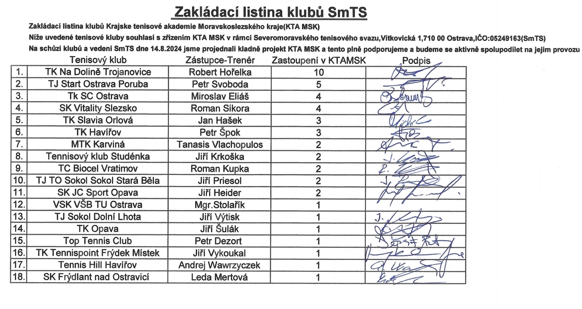 Krajská tenisová akademie Moravskoslezského kraje (KTA MSK) byla založena v druhé polovině roku 2024 s cílem vyhledávat, podporovat a systematicky rozvíjet největší tenisové talenty dětí a mládeže v našem kraji.